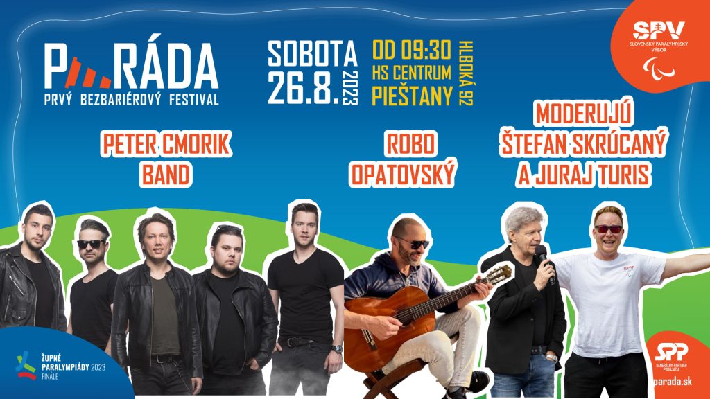 V sobotu 26. augusta organizuje Slovenský paralympijský výbor ďalší ročník podujatia „Paráda 2023 – prvý bezbariérový festival“ v Piešťanoch. Opäť sa všetci môžu tešiť na ukážky para športov, stretnutia s paralympijskými medailistami, workshopy, tvorivé dielne i SPP zónu zábavy. Podujatie moderuje Juraj Turis a Štefan Skrúcaný. Po tretíkrát privíta Paráda všetkých účastníkov v areáli HS […]