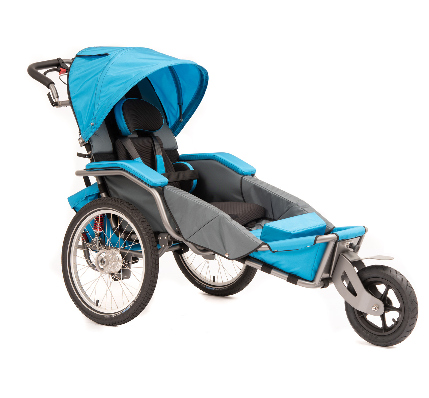 JOSI-pro jsou víceúčelové kočárky pro Vaše oblíbené outdoorové aktivity včetně jízdy na kole, běhu, lyžování, pěší turistiky atd. Josi- pro je určen pro děti a dospívající s komplexními speciálními potřebami. K dispozici je široká škála vybavení, včetně běžeckého kola, posturálních podpěr a dalšího vybavení. Nyní si můžete užívat venkovní aktivity s celou rodinou! Nemusíte zůstávat doma, ani se dělit na dvě skupiny, volný čas můžete trávit společně.